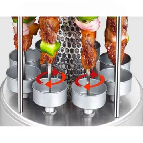 Opremljen sa 6 metalnih ražnjića dužine 25 cm, omogućava pripremu različitih kombinacija mesa, povrća ili čak voća. Ražnjići su projektovani tako da se deo koji viri iz uređaja ne zagreva, čime se eliminiše rizik od opekotina. Grejni elementi ravnomerno raspoređuju toplotu, dok reflektujući poklopac osigurava da svaki komad bude savršeno pečen i sočan, bez zagorelih ivica.
