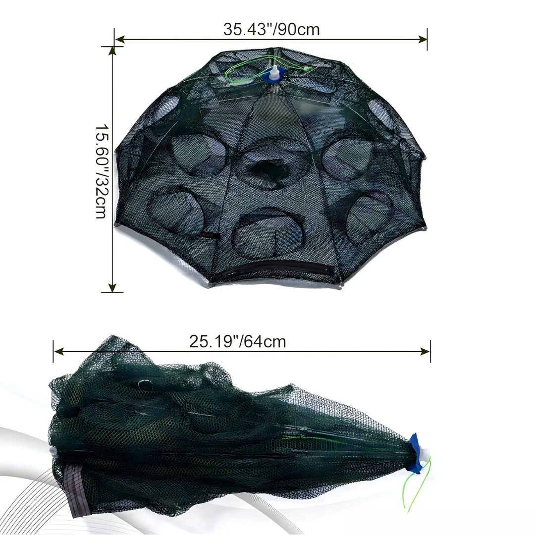 Ukoliko volite ribolov ili ste strastveni rekreativac na vodi, ova sklopiva mreža sa 20 ulaza biće vaš nezamenljiv saveznik. Dizajnirana da uhvati što više ulova uz minimalan trud, pogodna je za hvatanje ribe, rakova, škampa, žaba, jegulja i drugih vodenih stvorenja.