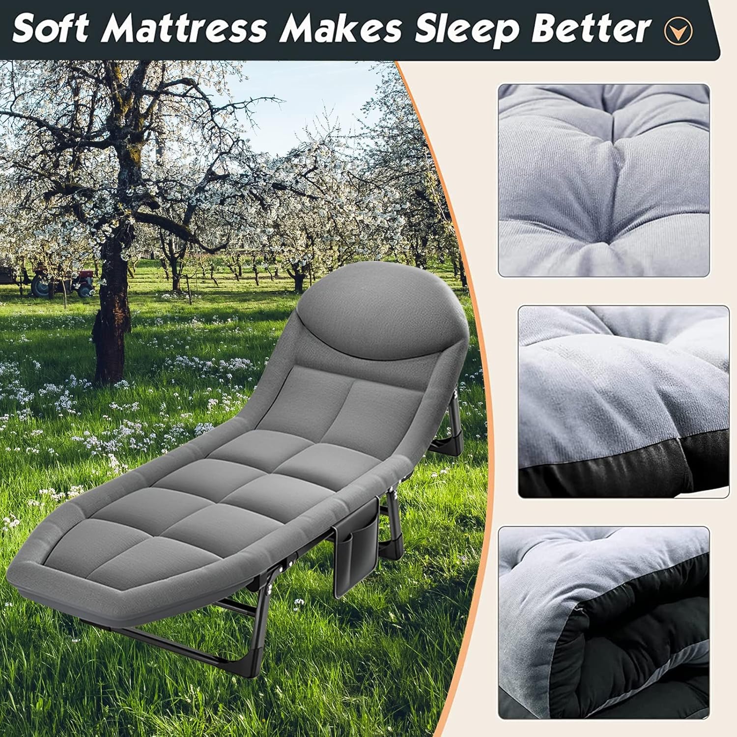 Kupci biraju naš sklopivi krevet zbog njegove praktičnosti, kvaliteta i udobnosti. Idealan je za spoljašnju i unutrašnju upotrebu, kao pomoćni ležaj ili za kampovanje.