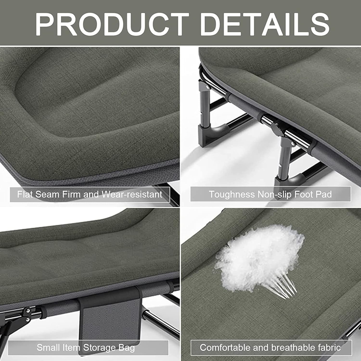Napravljen od izdržljivih materijala, uključujući pamučnu i lanenu tkaninu i čvrste elipsaste cevi, ovaj krevet može izdržati do 160 kg. Protivklizni nogari osiguravaju stabilnost.