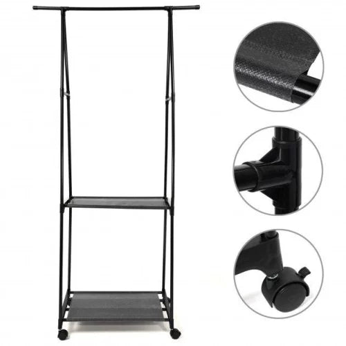 Na gornjoj šipki možete okačiti kapute i odeću, dok dvoslojna metalna polica pruža dodatni prostor za skladištenje jorgana, obuće, presavijene odeće ili kutija. Ovaj stalak je jednostavan za sastavljanje i pruža stabilnu i prostranu opciju za organizaciju.