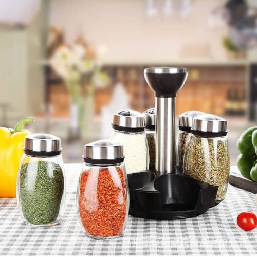 Stalak je opremljen sa šest teglica i rotirajućom podlogom, što omogućava jednostavno korišćenje i lakši pristup svim začinima. Uz tri različita otvora za doziranje, možete prilagoditi količinu začina u zavisnosti od vaših potreba. Osim osnovnih začina koje koristite svakodnevno, možete dodati i manje uobičajene vrste začina, čineći vašu kuhinju još lepšom i profesionalnijom.