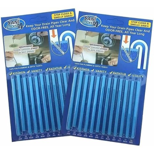 Pakovanje sadrži 12 štapića, a samo jedan štapić je dovoljno da se ubaci u odvodnu cev, gde se polako rastvara i čisti unutrašnjost cevi, uklanjajući neprijatne mirise. Ovaj proces je potpuno bezbedan i jednostavan, a dovoljno je da ga ponovite jednom mesečno kako biste održali odvode u savršenom stanju.