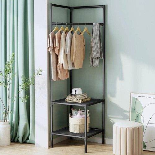 Ugaoni stalak za odeću 180x45cm – moderni dizajn sa policama i kukama